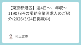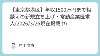 産業医求人情報 【東京都港区】年収1500万円まで相談可の新規立ち上げ・常勤産業医求人(2026/3/25現在掲載中)