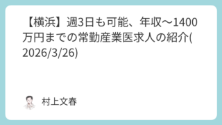 産業医求人情報 【横浜】週3日も可能、年収~1400万円までの常勤産業医求人の紹介(2026/3/26)