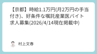 産業医求人情報 【京都】時給1.1万円(月2万円の手当付き)、好条件な嘱託産業医バイト求人募集(2026/4/14現在掲載中)