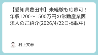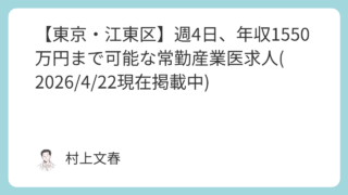 京都エリアで募集されている、希少な嘱託産業医の非常勤求人です。時給1.1万円という高水準に加え、月2万円の手当が支給される点が大きな魅力となっています。産業医求人の中でも、嘱託契約かつ限られた稼働で安定した報酬を得られる案件は限られており、...