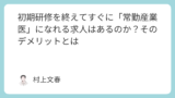 私は後期研修をドロップアウトし、産業医へと転職しています。その後は順風満帆…というわけにはいかず、そこからさらに2度の転職をしております。この内容は、でも書きましたが、一社目の産業医は知識や経験不足、そして人事労務担当者とのコミュニケーショ...