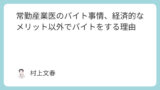 常勤産業医はまだまだ希少種