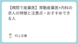 また、場合によっては「産業医が主治医にもなる」状況も可能性としては考えられ、それが(トラブルになった時)産業医的に良いのか悪いのか、というところもあったりはします。