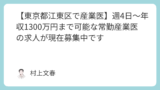 「未経験だと…ちょっと考えますが、一応、常勤産業医の経験があれば積極的に採用を検討しますよ。産業医として、社員の健康に取り組みたいという方、ぜひ」という内容になっています。
