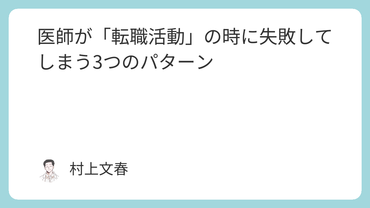 では、その「転職活動での失敗」とはどのようなものか、今回は3つのパターンについて書いてみたいと思います。