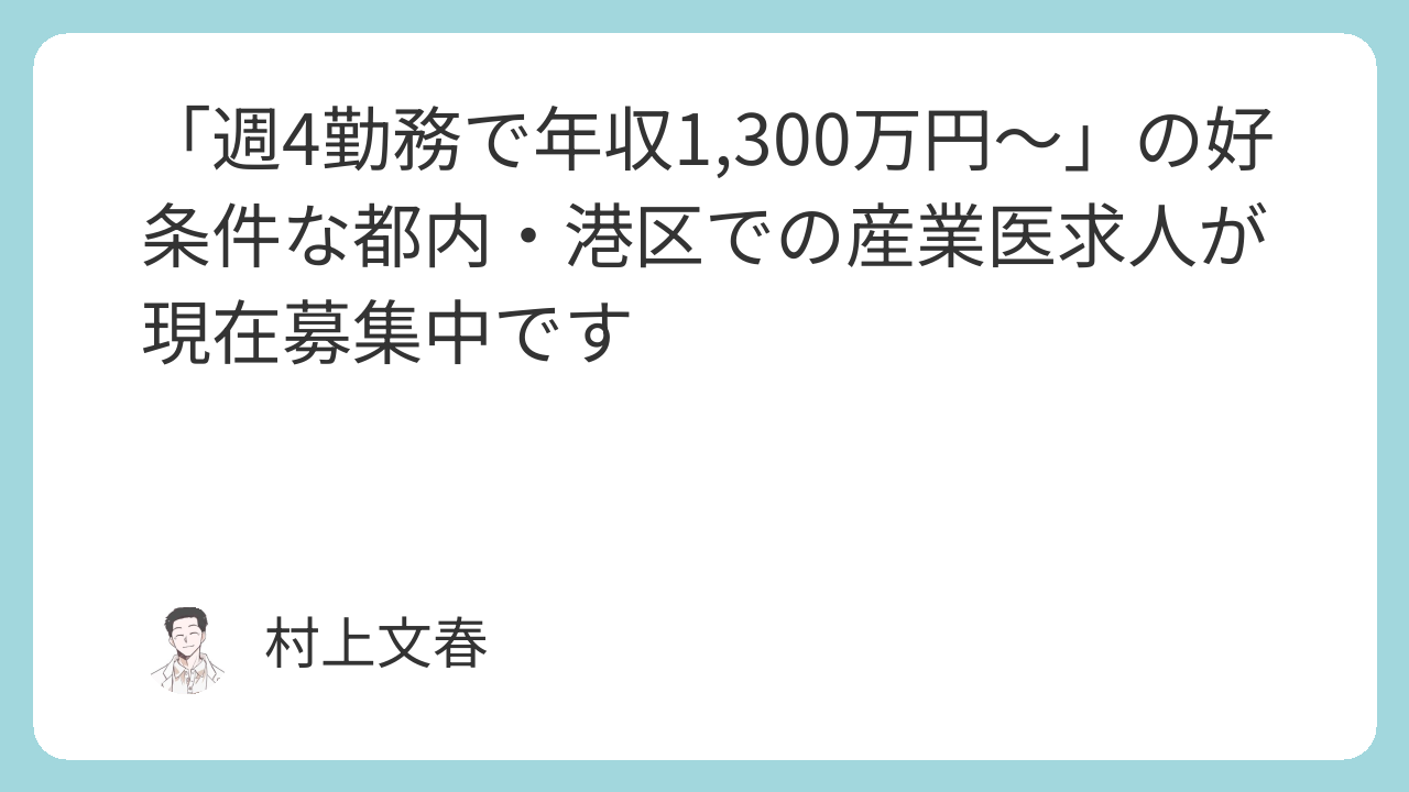 「週4勤務で年収1,300万円~」の好条件な都内・港区での産業医求人が現在募集中です
