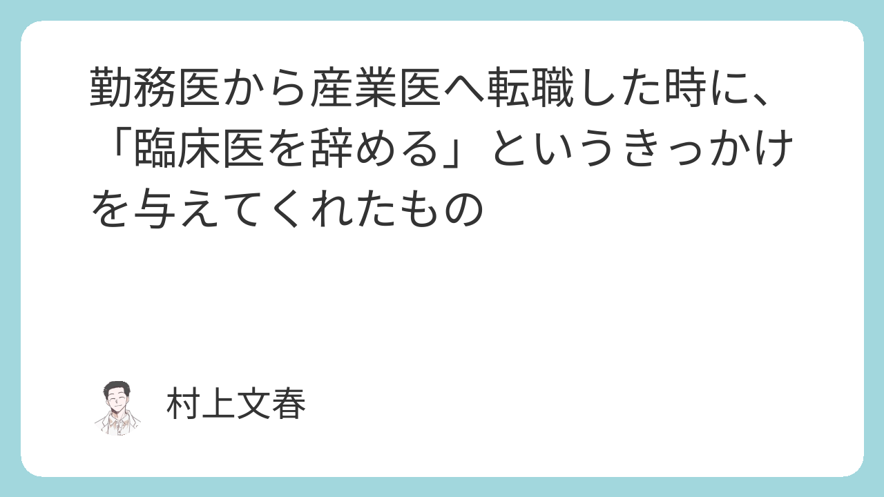 勤務医から産業医へ転職した時に、「臨床医を辞める」というきっかけを与えてくれたもの