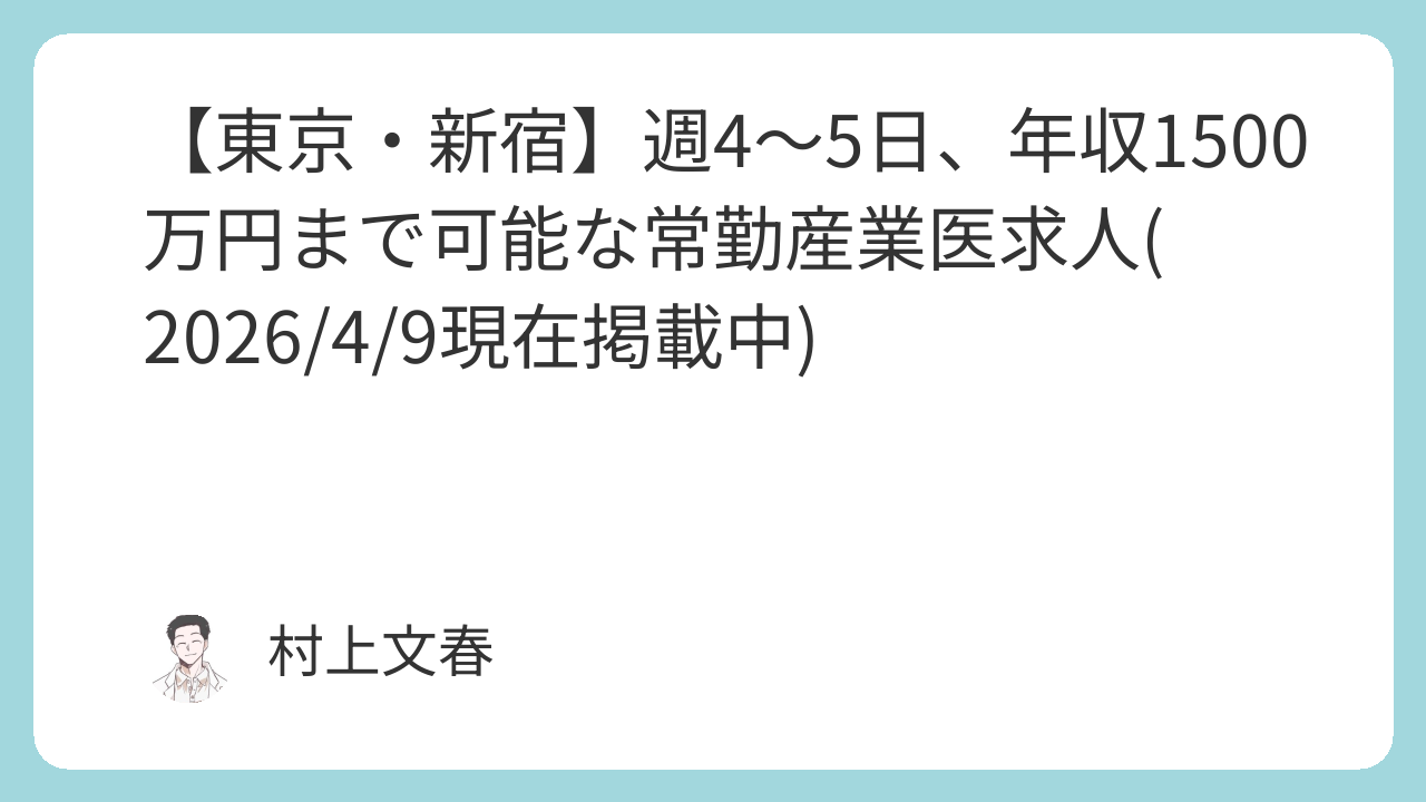 そのため、産業医としての経験を積み、次のステップとして「より裁量の大きい環境」や「経営に近い立場での関与」を志向する医師には非常にフィットします。一方で、未経験や経験の浅い段階ではややハードルが高い求人である点には留意が必要です。年収水準も高く設定されていることから、キャリアアップと報酬アップを同時に実現したい中堅~ベテラン医師にとって、有力な選択肢となると思われます。
