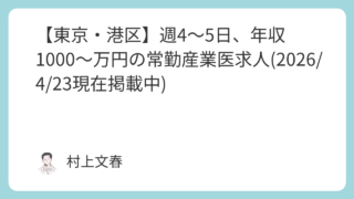 産業医求人情報 【東京・港区】週4~5日、年収1000~万円の常勤産業医求人(2026/4/23現在掲載中)