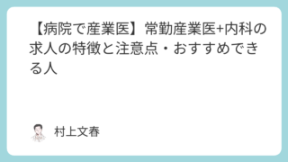 産業医求人情報 【病院で産業医】常勤産業医+内科の求人の特徴と注意点・おすすめできる人